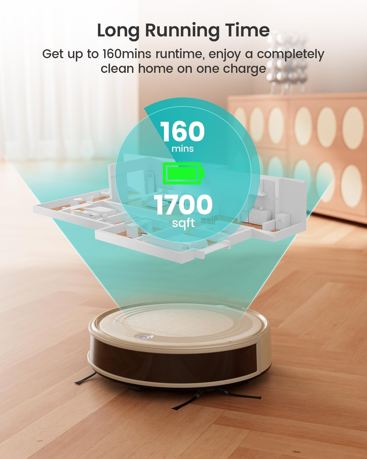 Slim Design & Freemove Tech 3.0: At just 2.99 inches tall, the M310 easily cleans under beds, furniture, and hard-to-reach spaces; Unique Freemove Tech 3.0 ensures obstacle avoidance, ensuring thorough and high-coverage cleaning