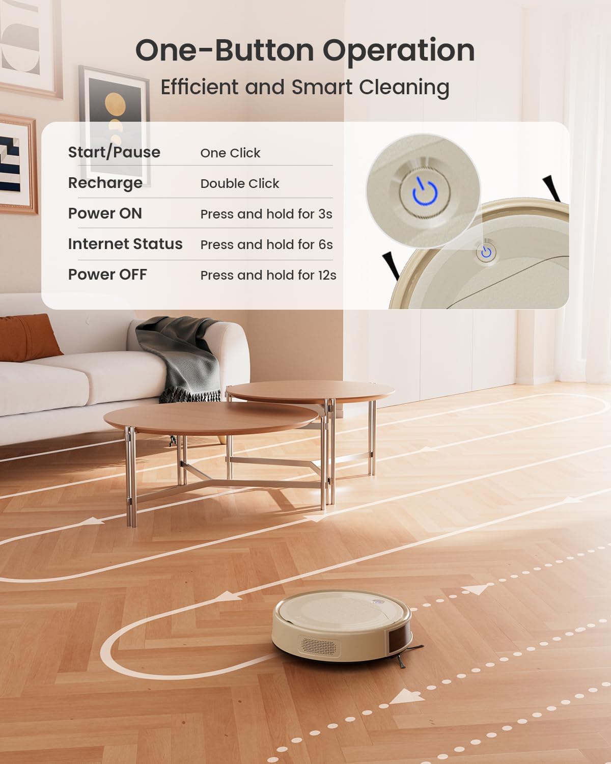 Strong Suction for Deep Cleaning: M310 delivers 4500Pa suction power with dual side brushes; effectively cleans dust, pet hair, crumbs, and debris from hardwood floors and low-pile carpets; no-entanglement design eliminates the need for manual cleaning