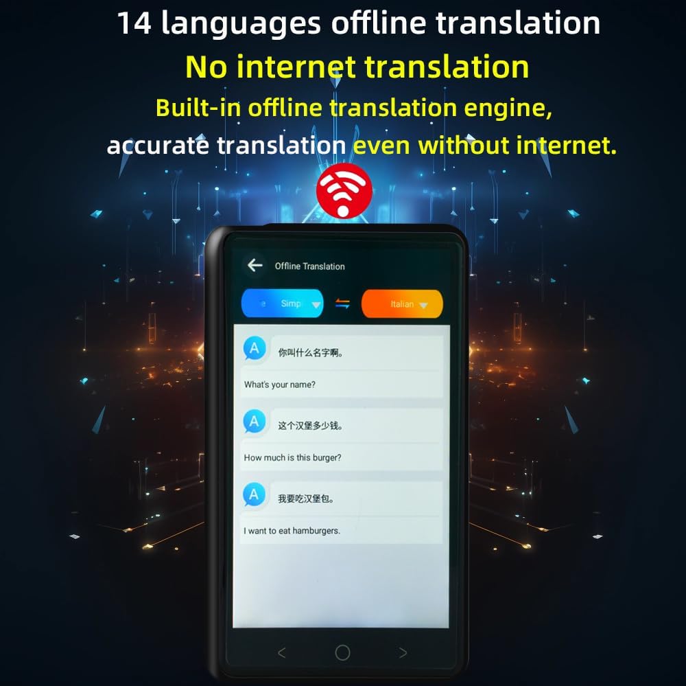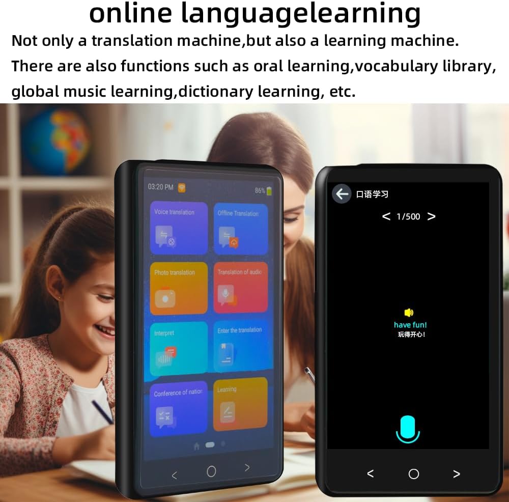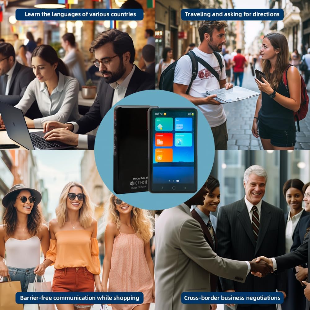 2023 Smart Language Translator: Our translator device can translate text, speech, images, and documents from one language to another, support online and offline translation. Noise Cancelling Dual Microphones: Equipped with cutting-edge noise-canceling dual microphones, the translation device excels in capturing clear voices by effectively suppressing background noise. This advanced feature ensures a seamless and precise translation experienc.e Compact Size, Easy to Carry on: The two-way instant translator is small in size(4.13×2.5×0.6 inches,) with 4-inch IPS HD touch screen, can be operated with one hand without pressure and can be put in your pocket,which allows you to carry it anywhere. User-Friendly Design: Enjoy an intuitive and user-friendly design that makes language translation easy for everyone. Our device is designed with simplicity in mind, providing a hassle-free experience for both beginners and seasoned users. Widely Usage: Our language translation device features multiple translation methods, instant translation and compact design, perfect for travel enthusiasts, business people, students engaged in overseas shopping, travel, business activities and academic exchanges and other activities