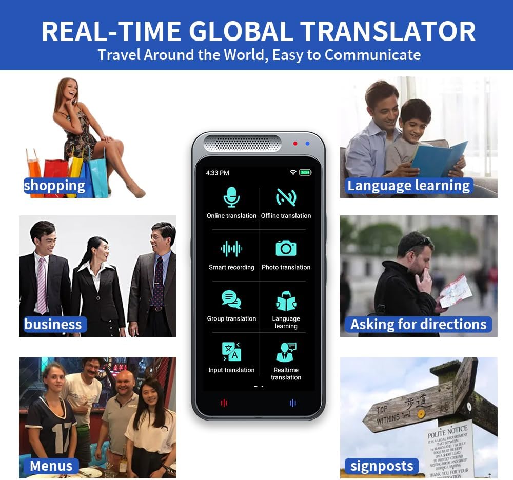 This translator is compact and lightweight, pocket size, easily to be packed. The 4” high-definition touchscreen allows you to easily read the translated text; you can also play the recorded translation, great for learning.