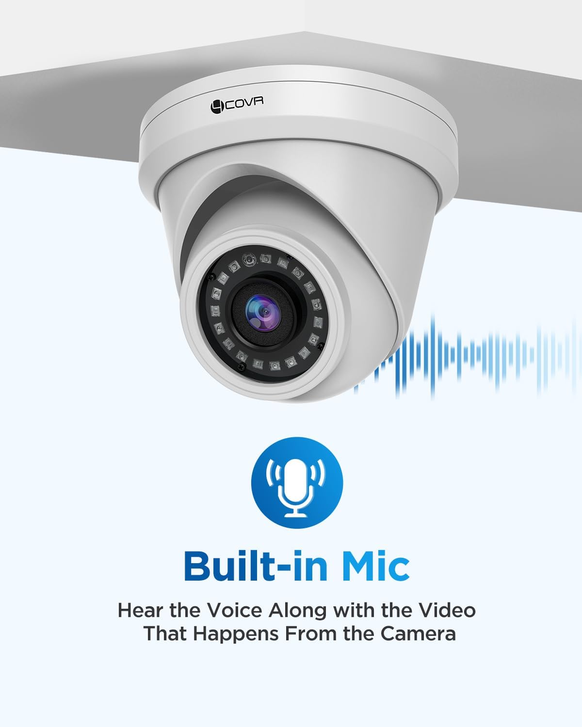 POE PLUG AND PLAY: Powered over PoE, only one cable needed for audio, video, and power. Easy setup with 4COVR PoE NVR, switch, or injector (not included)