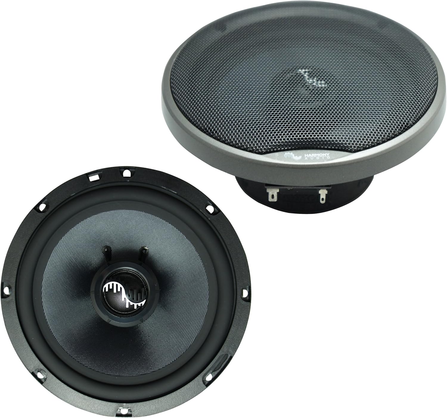 Factory speakers are made from cheap materials like paper and in most cases do not even have tweeters which means more than half of the audible frequency range is lost. Harmony Audio Rhythm series speakers are designed to directly replace the factory speakers dramatically improving sound quality and reproduce music like the artist intended. The speakers are available in a wide range of sizes and are constructed from high quality materials like polypropylene cones, durable rubber surrounds and 1/2″ or larger PEI dome tweeters.
