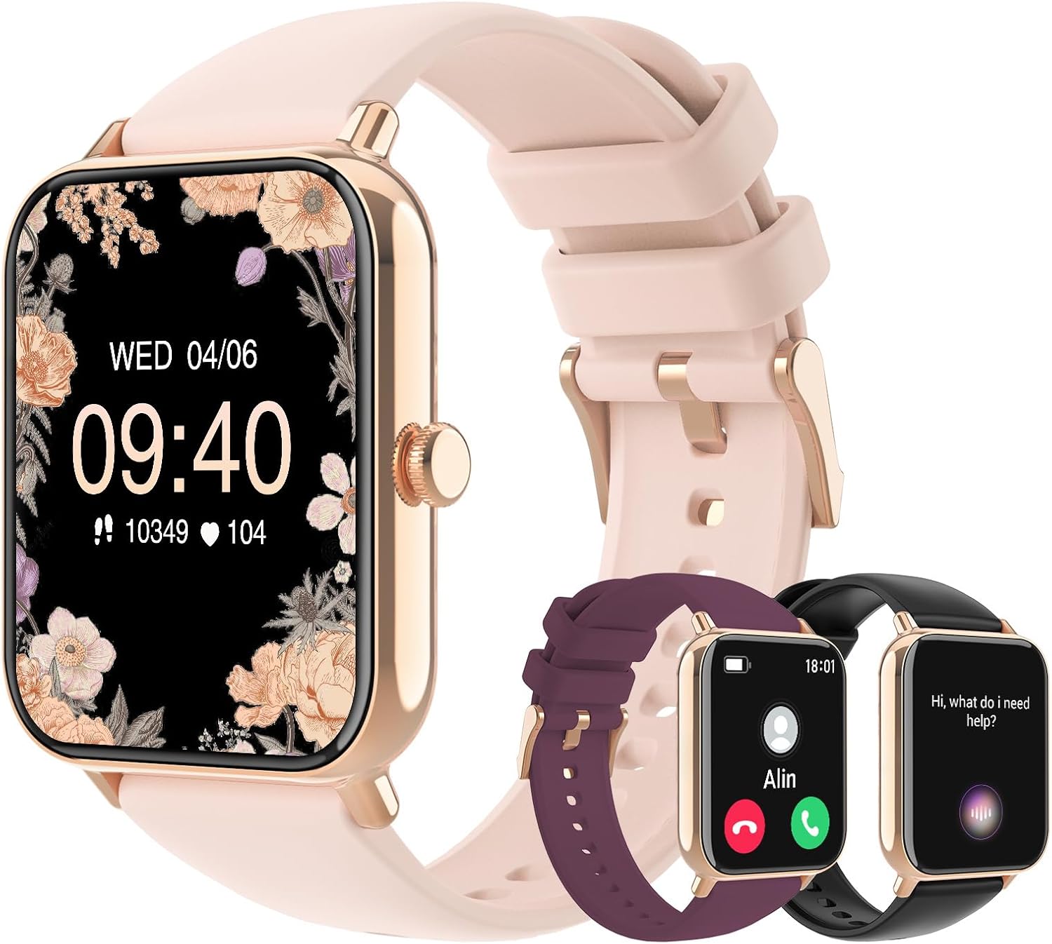 【Large Screen Multifunctional Smartwatch】The new women’s watch features a 1.85″ TFT color touchscreen that offers a wide and vibrant immersive viewing experience, ensuring a unique and satisfying user experience. The square metal dial comes with 3 straps, sweat-proof and durable with IP67 waterproof, meeting your daily waterproof needs. Bluetooth call, voice assistant, health monitor, fitness tracker, alarm clock, calculator, music player, pedometer, everything you need is on your wrist