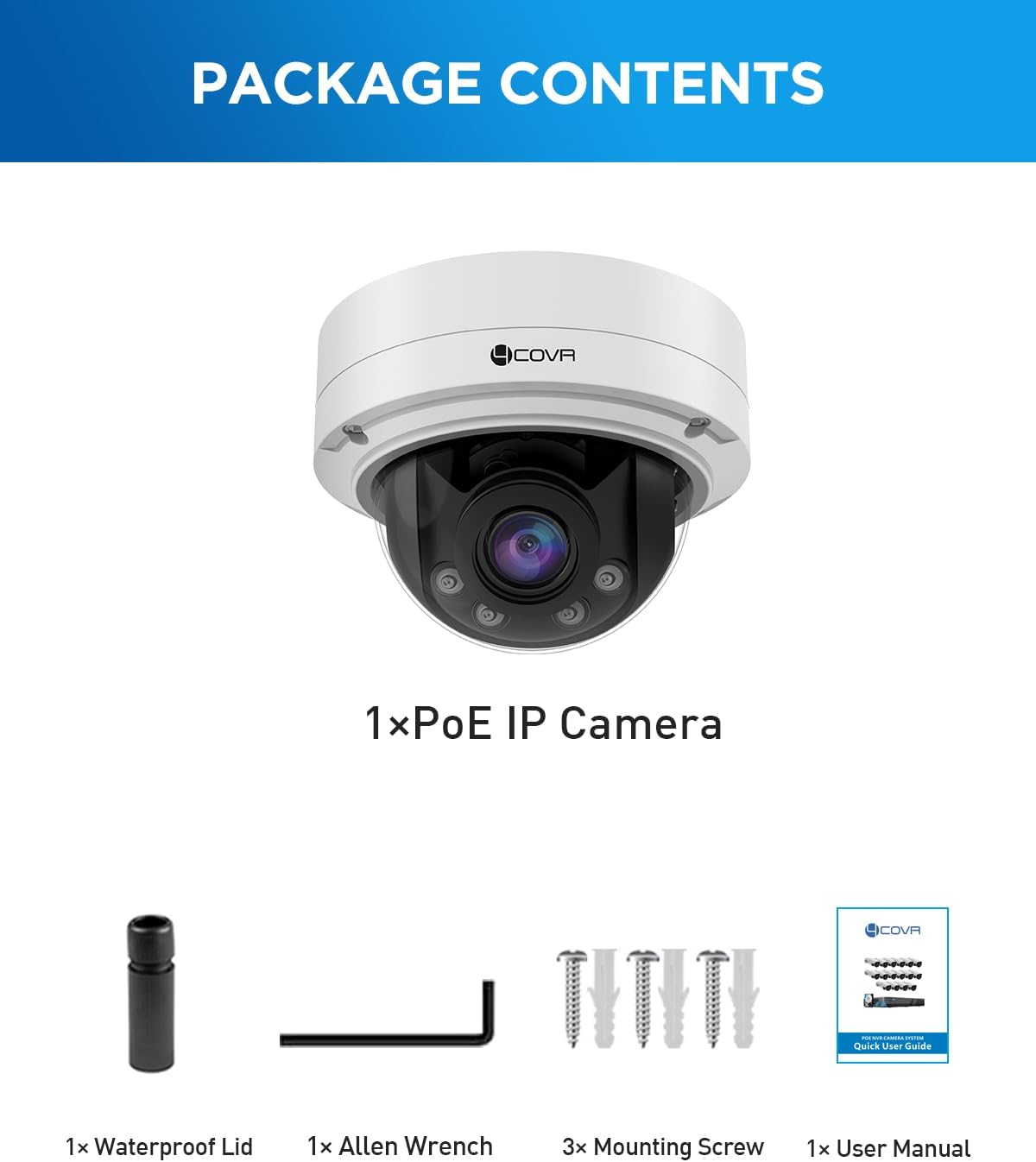 COMPATIBILITY: This camera with standard protocol and 802.3af PoE, DHCP enabled. Fully compatible with 4COVR PoE NVR. And limited works with other brand NVRs.