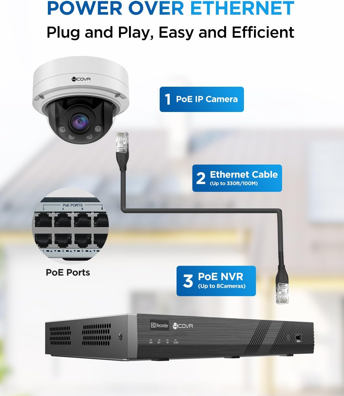 POE PLUG AND PLAY: Powered over PoE, only one cable needed for audio, video, and power. Easy setup with 4COVR PoE NVR, switch, or injector (not included)