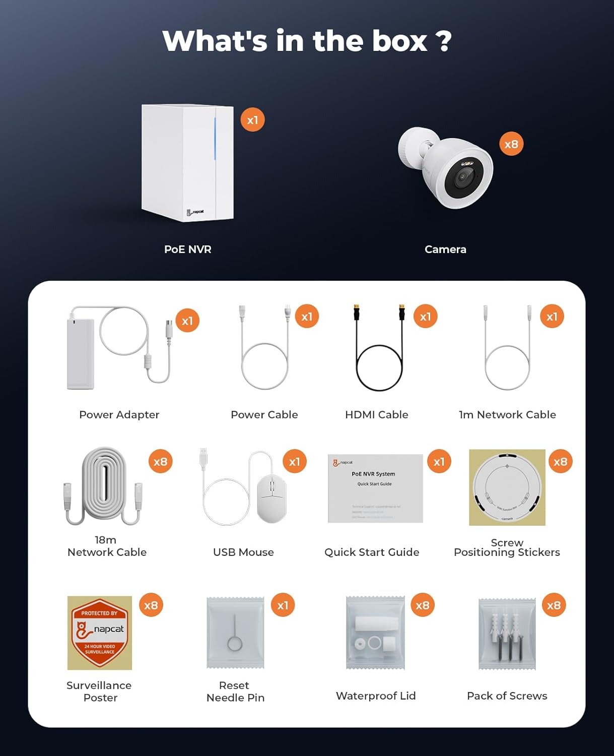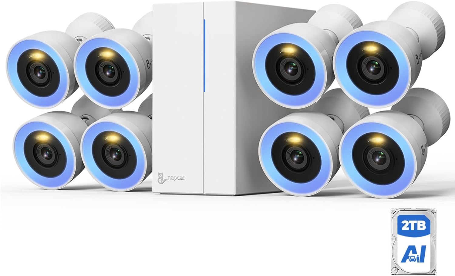 Smart Deterrence & Remote Access – This wired security camera system with strobe lights and a siren boosts security and deters intruders. Receive instant alerts through the Napcat Life app. The 8 camera system supports flexible viewing options: access footage remotely via smartphone app or PC software, or view locally on a connected monitor, even without internet.