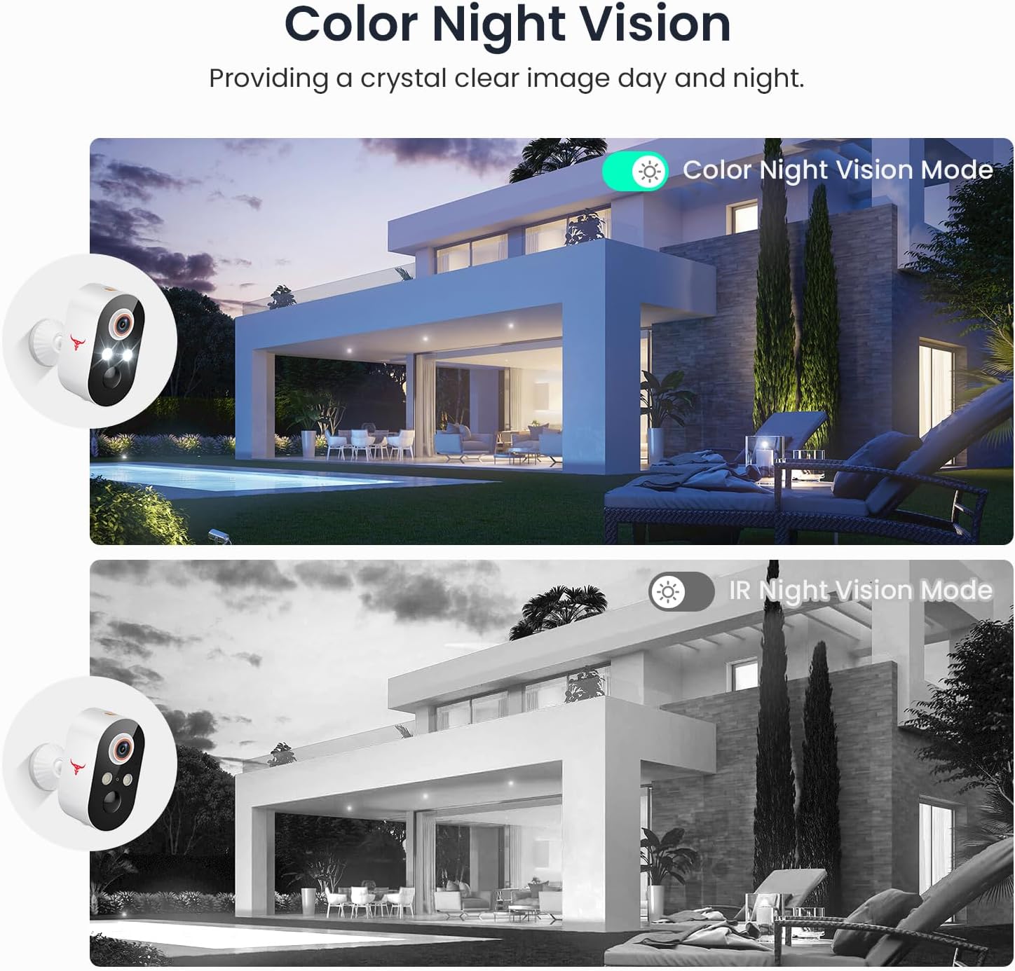 【1080p & Infrared Night Vision】With this outdoor security camera, enjoy 1080p Full HD visuals and infrared night vision, empowering you to oversee your home throughout the day and night, regardless of your location.