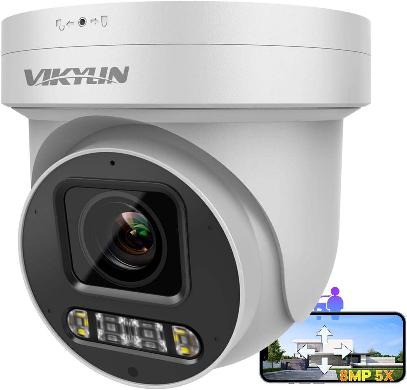UltraHD 4K PTZ 5XOptical Zoom:8MP@20fps 60@FPS(1920×1080)resolution featuring the latest 1/2.8″ IMX415 CMOS,come with 2 warm lights and 2 IR leds illumination can be captured clear images in low light or total darkness, up to 132ft ultralong night vision distance; high speed Dome with Pan 0° to 275°/Tilt 0° to 90° to cover a much bigger vision range ,2.7-13.5mm Motorized Lens enables you to zoom into see more details of far-away objects without impairing image quality