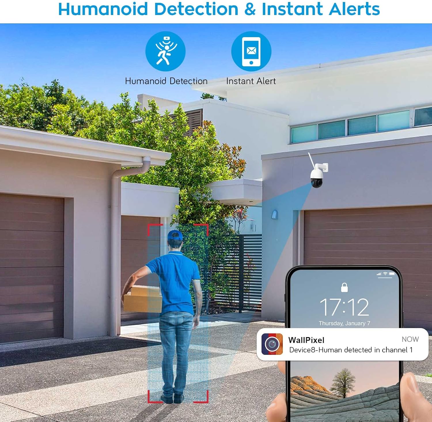 【AI Humanoid Tracking & Zoom】The outdoor camera detects humanoid and automatically follows the people, and automatically zoom in and out to give you better view.
