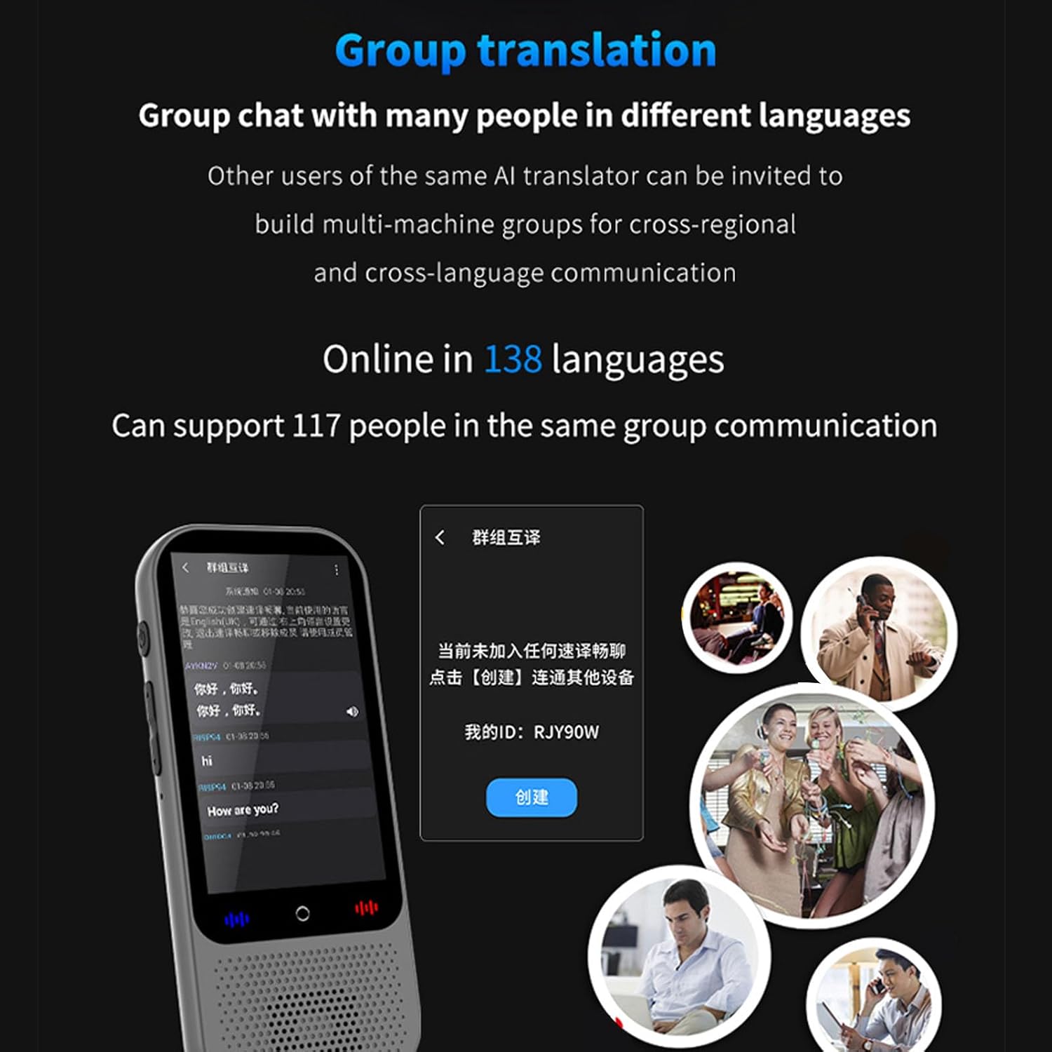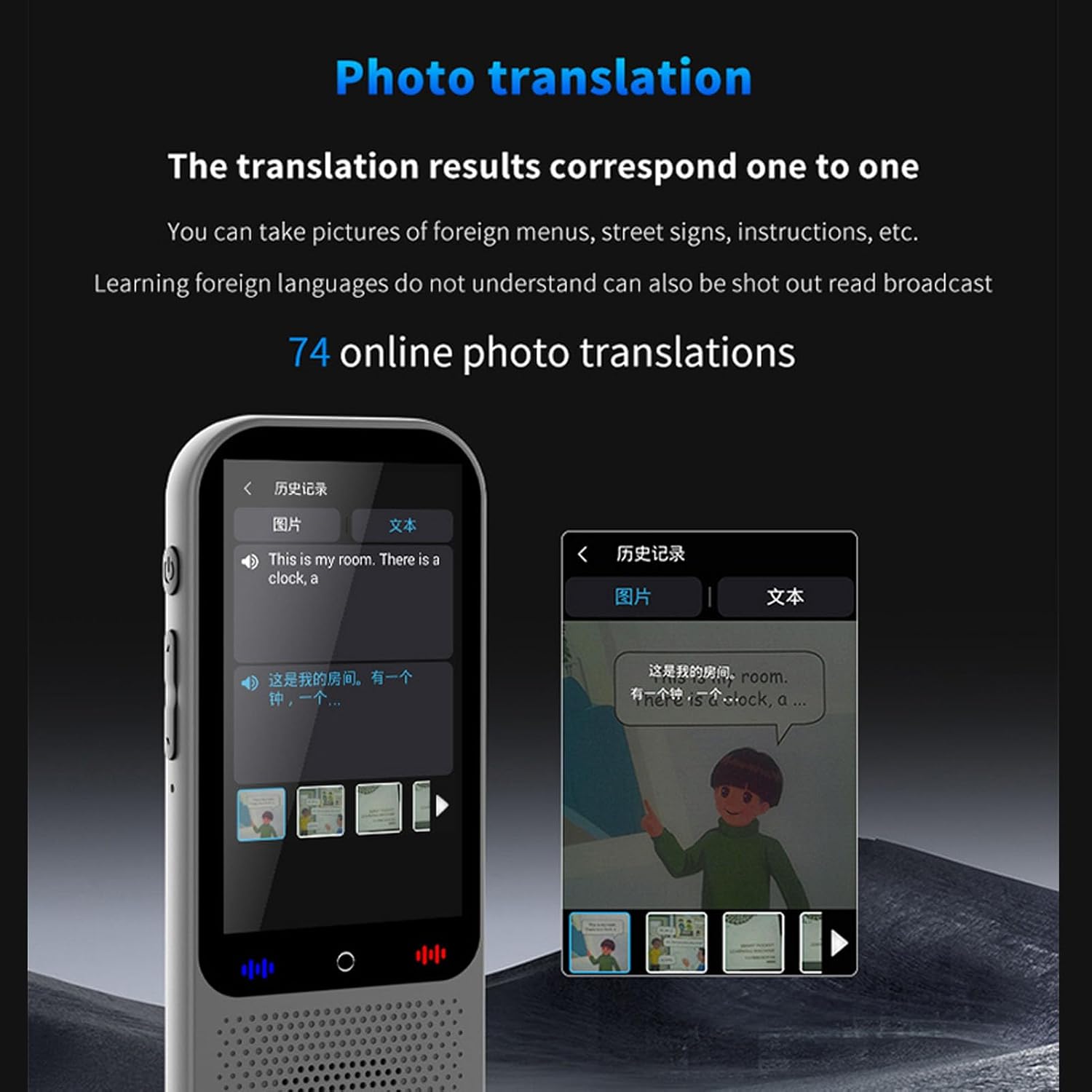 Noise Reduction and Recording Storage: Powered by for YNMT Neural Network Engine, and coupled with HD noise cancelling speakers, the device hears well and delivers accurate and fluent translations. Moreover, it can stores the translation recording contents, built in high capacity storage.