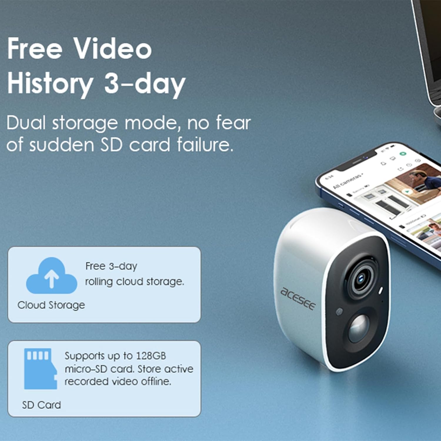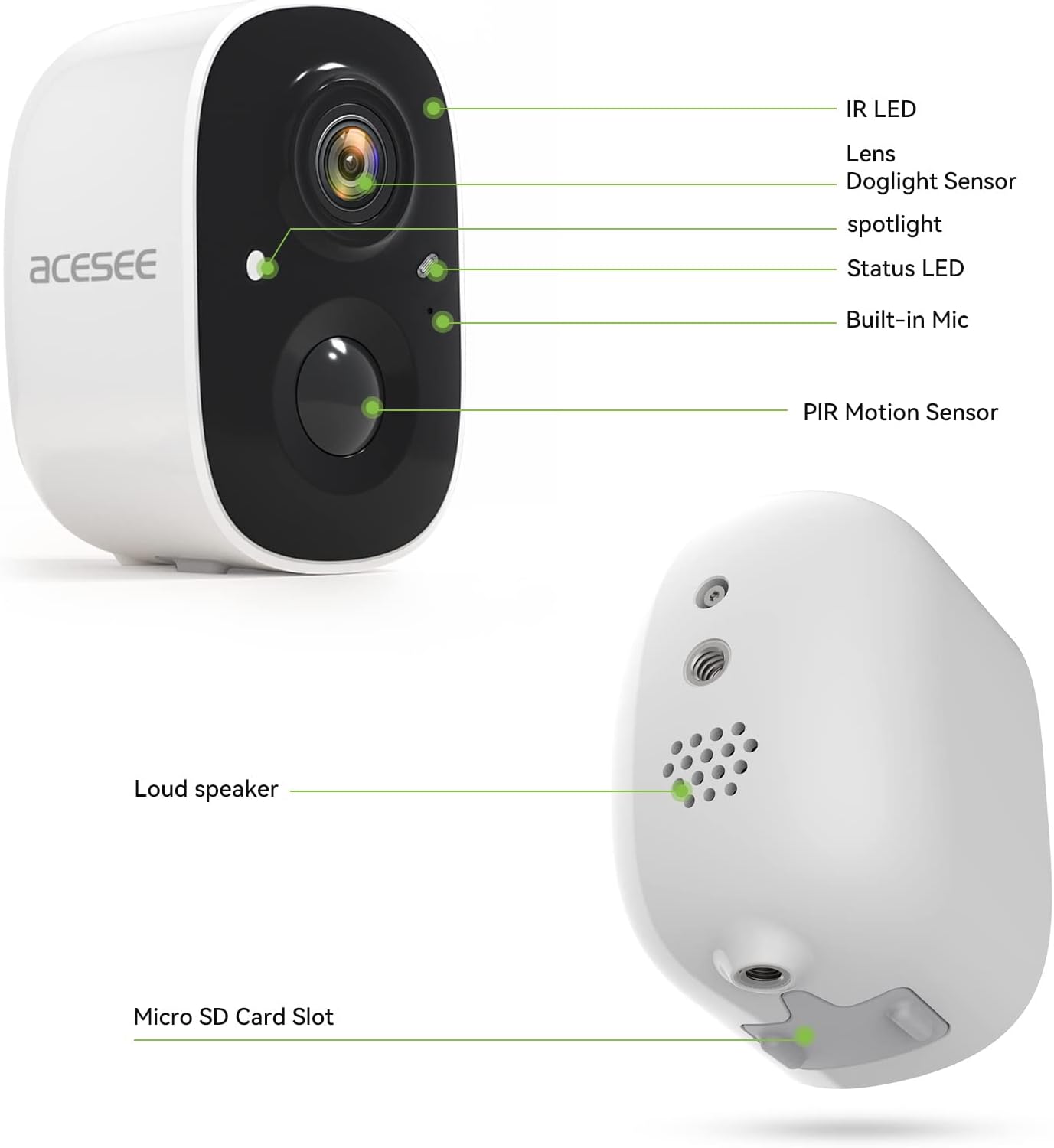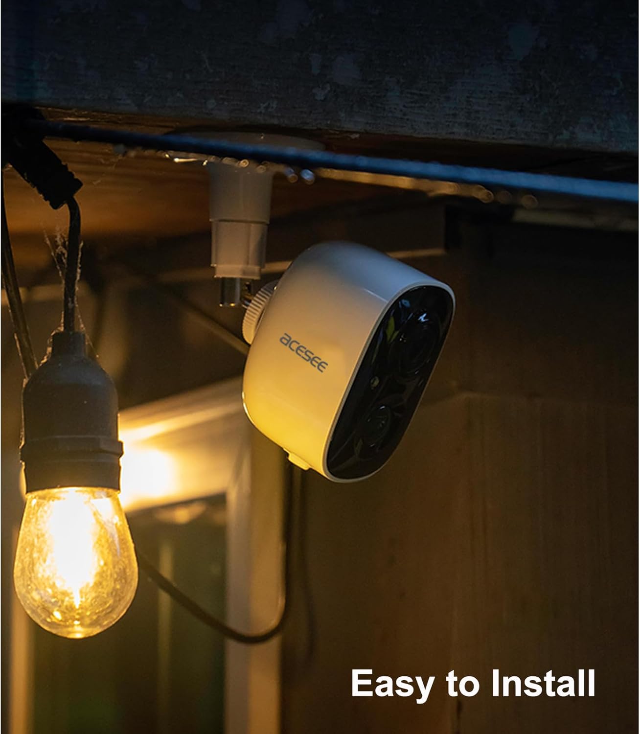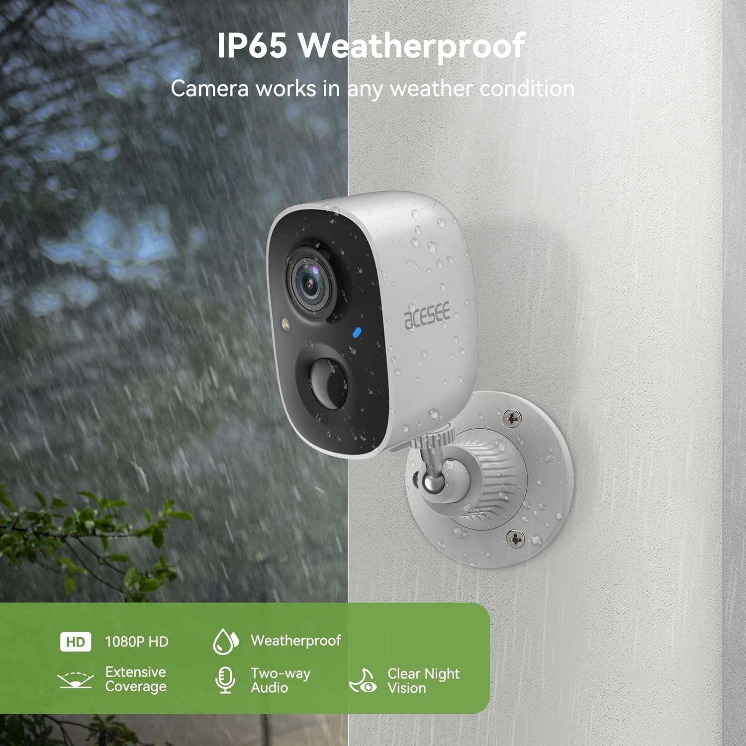 Easy to Install & Waterproof Design – acesee exterior cameras security wireless outdoor can be installed almost anywhere, 100% Wire free, such as a shop, office, home, garage, yard, outdoor/indoor. Our wireless battery-powered camera can be set up in 5 minutes. Comes with bracket screws easy installation everywhere. Waterproof IP65, designed to resist extreme harsh weather.