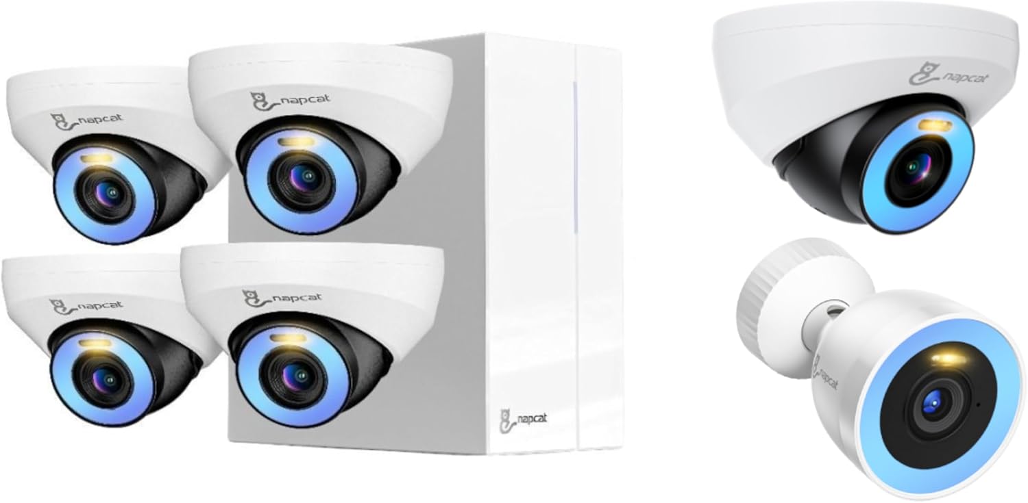 Smart Deterrence & Remote Access – This wired security camera system with strobe lights and a siren boosts security and deters intruders. Receive instant alerts through the Napcat Life app. The 4 camera system supports flexible viewing options: access footage remotely via smartphone app or PC software, or view locally on a connected monitor, even without internet.