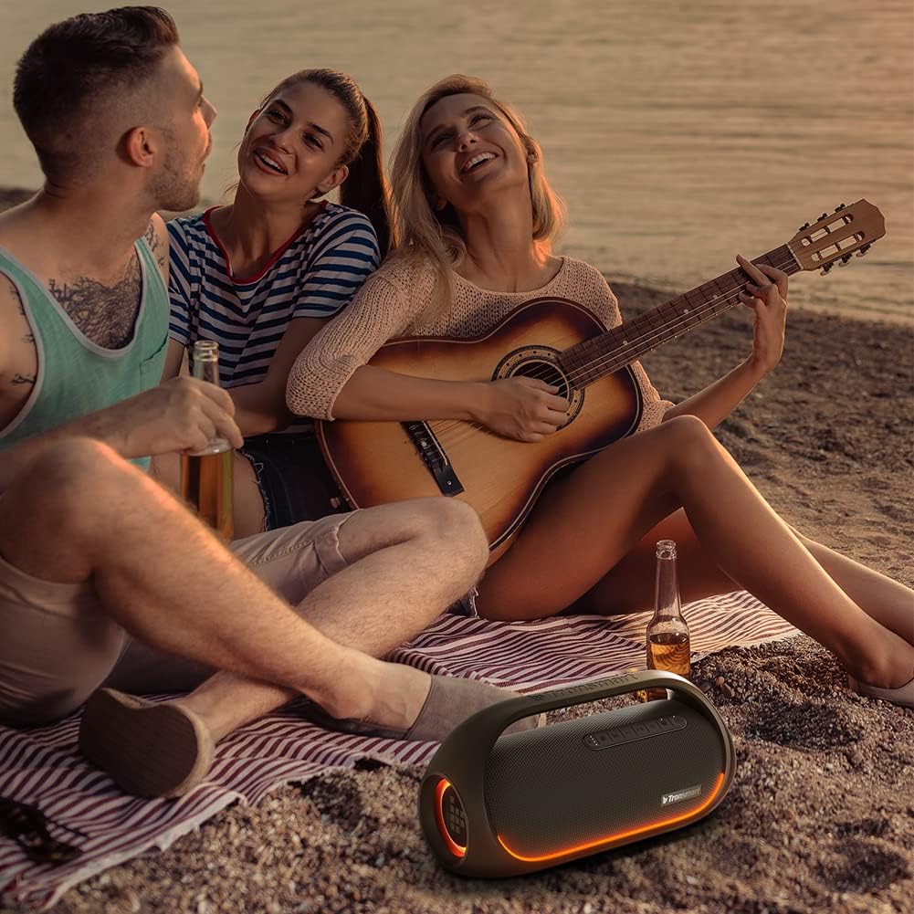 【IPX6 Waterproof Speaker】 The beautiful design with an affixed handle makes this portable speaker waterproof easy to grab and go, giving the outdoor speaker portability. Tronsmart waterproof Bluetooth speaker is IPX6-rated and very resistant to heavy sprays of water from all directions. It is ideal for outdoor activities such as camping, riding, boating trips, or beach trips.