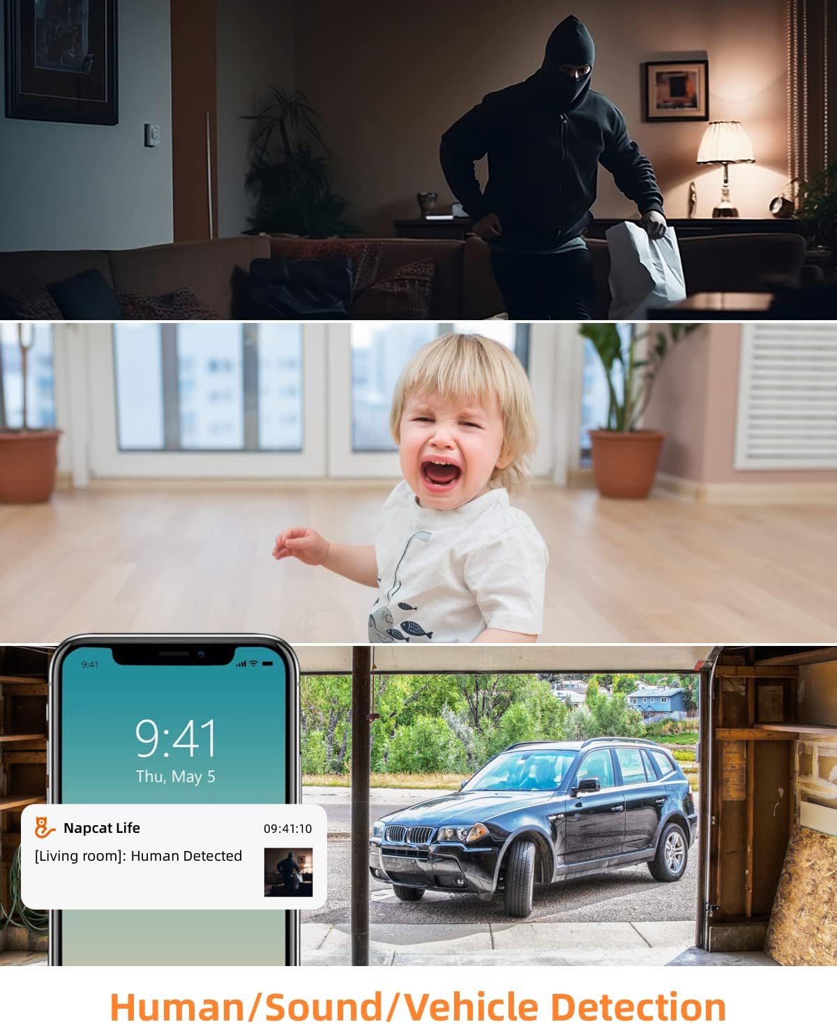 AI Detection & Privacy Mode: The camera accurately detects humans, sounds, and vehicles while reducing false alerts. It notifies you of unusual noises, such as barks or baby cries. Easily activate privacy mode via the app to stop recording whenever needed.