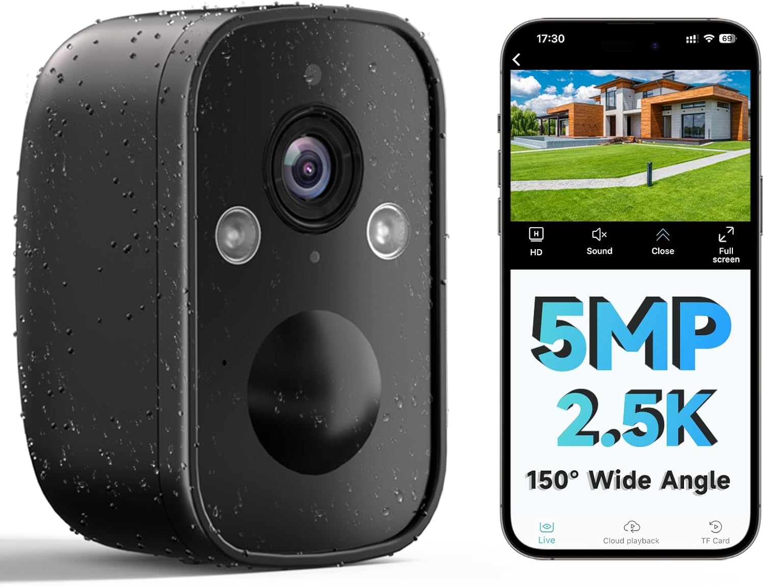 [2.5K Ultra QHD] ELECCTV BW6-N 5MP outdoor camera wireless battery powered features a 150° wide-angle lens that provides crystal-clear 2.5K QHD 5MP resolution (2560×1920 pixel), delivering detailed and vivid footage. our Full Color Night Vision mode keeps your property secure, even in low-light conditions.2.5K Ultra QHD has 250% times the pixels of 1080P.