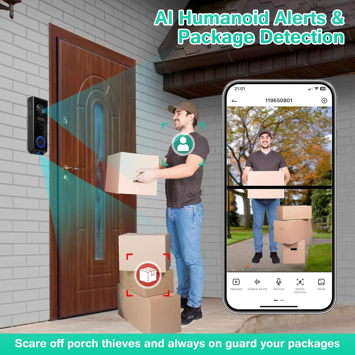 【Package Detection & Delivery Guard】Get instantly notified when your package arrives with Delivery Guard. Plus, you’ll receive pick-up reminders and alerts if someone approaches your package.Pair with a Chime to Hear Alerts Throughout Your Home,you Can connect with pairing Bitnovol chime Pro.