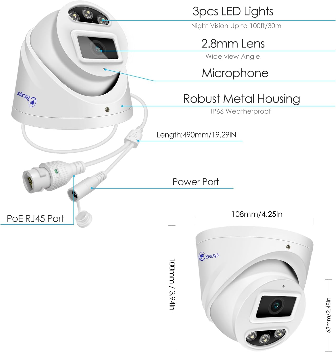 EXPERIENCE ULTRA HD 4K 8MP POE CAMERA – Stunning ultra-high quality 4K (8-Megapixel / 3840×2160) resolution featuring enhanced low light capability utilizing the latest CMOS image sensor and chipset. The heavy duty metal outdoor IP67 Weatherproof can endure even the harshest climates,Super-wide 100° viewing angle allows you to cover more ground and keep more of what matters to you safe. Power Over Ethernet (POE camera) for easy installation (POE Switch Not Included).