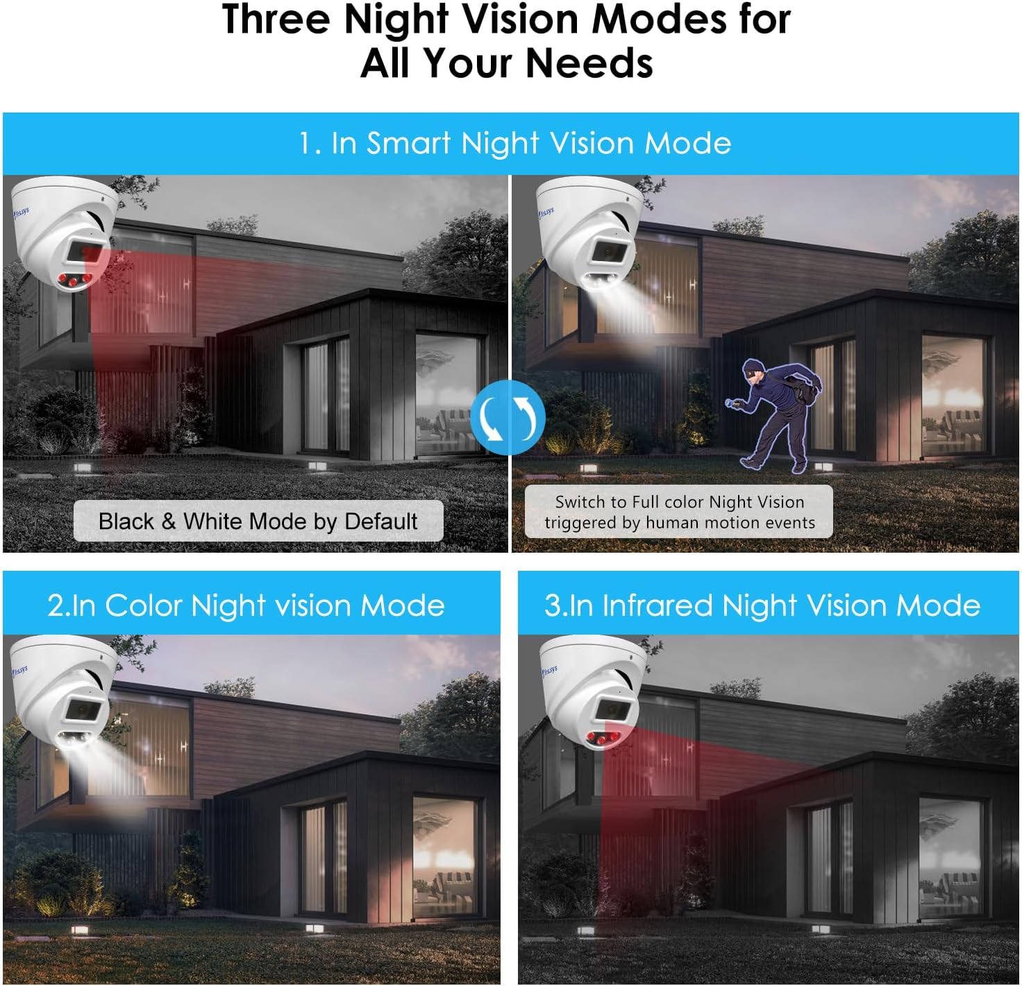 - AI motion detection, Color Night Vision