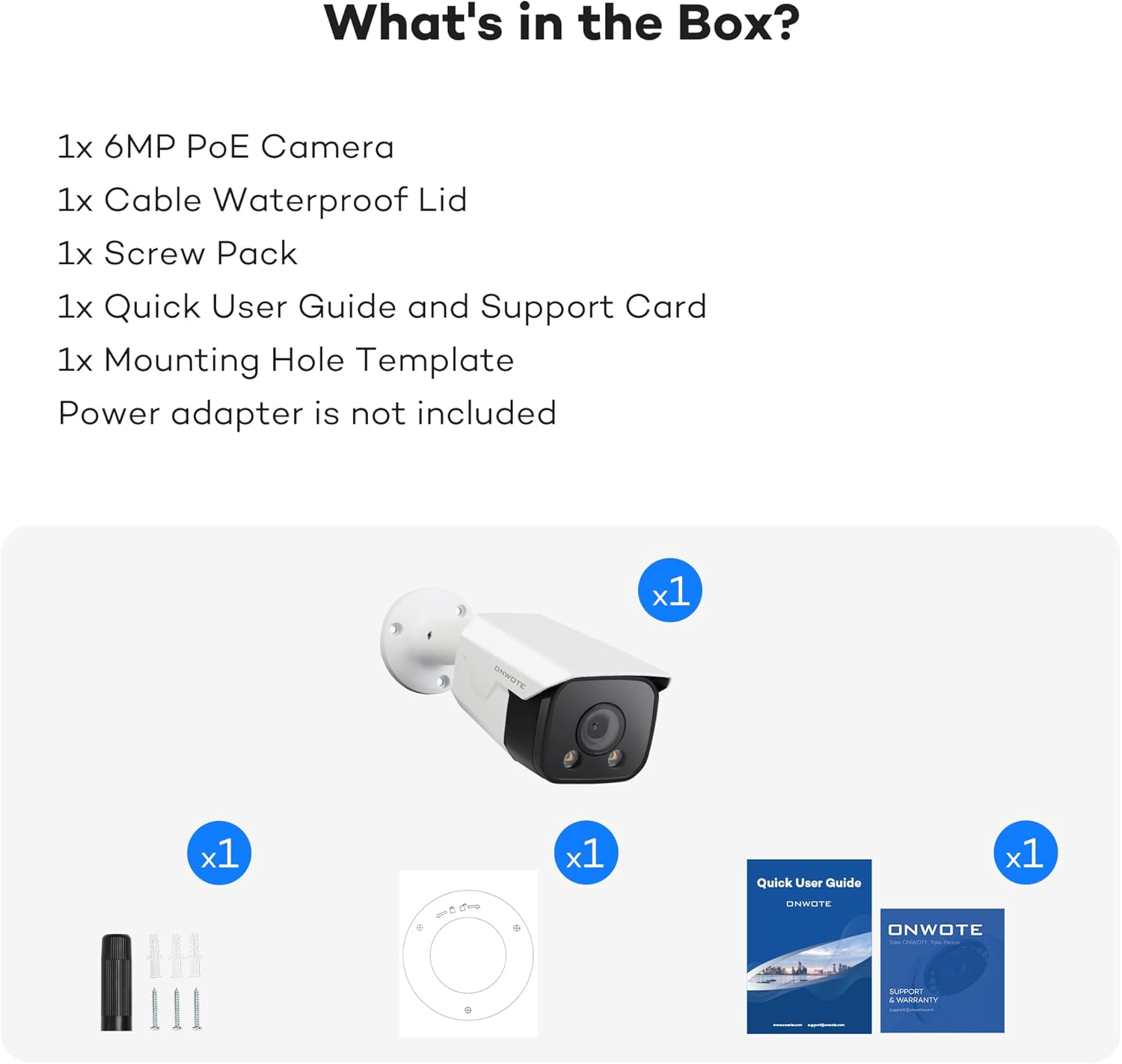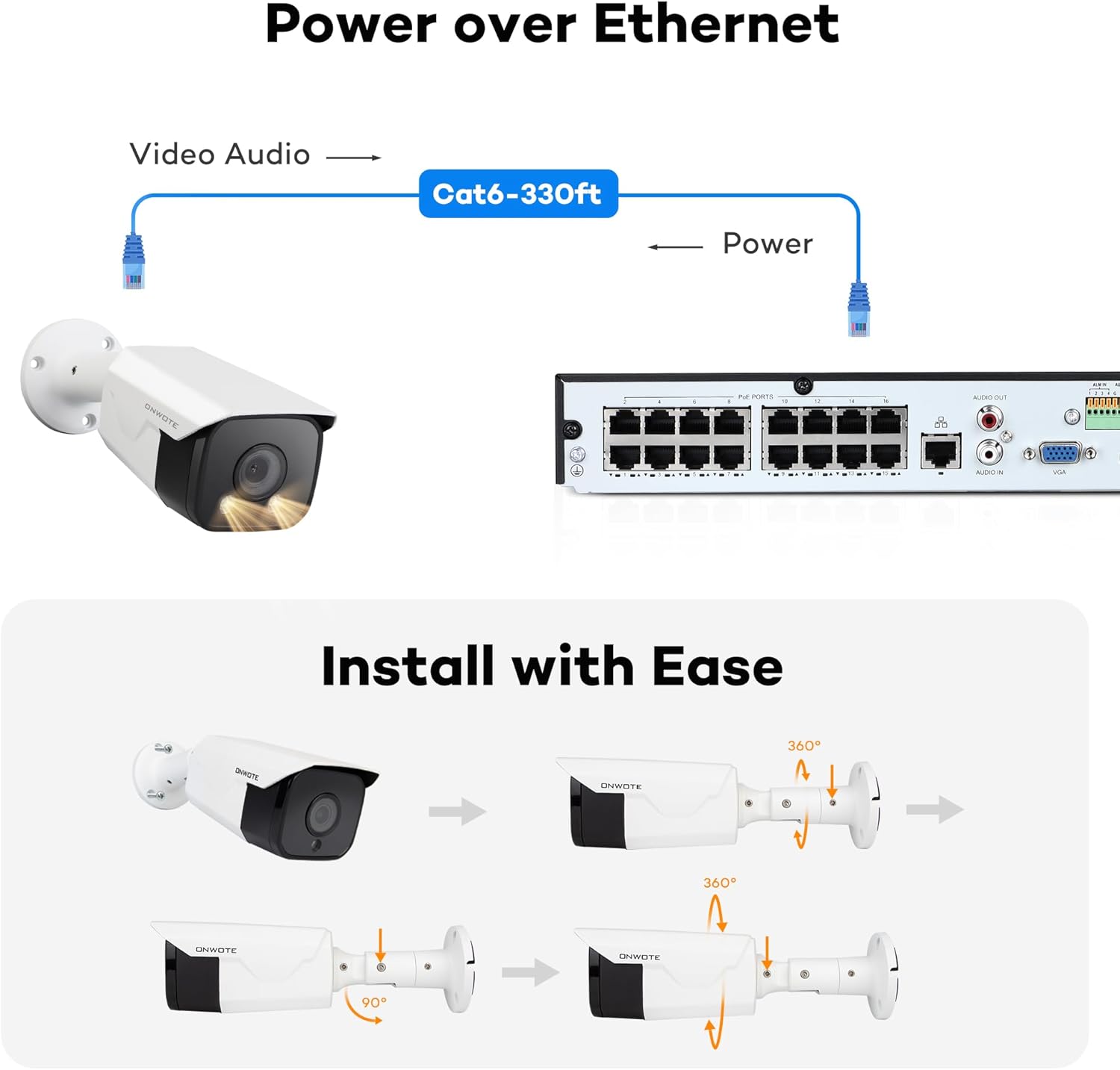 Add-on to ONWOTE System– work with ONWOTE 12MP/ 8MP PoE NVR or PoE switch with 48V-54V power supply.