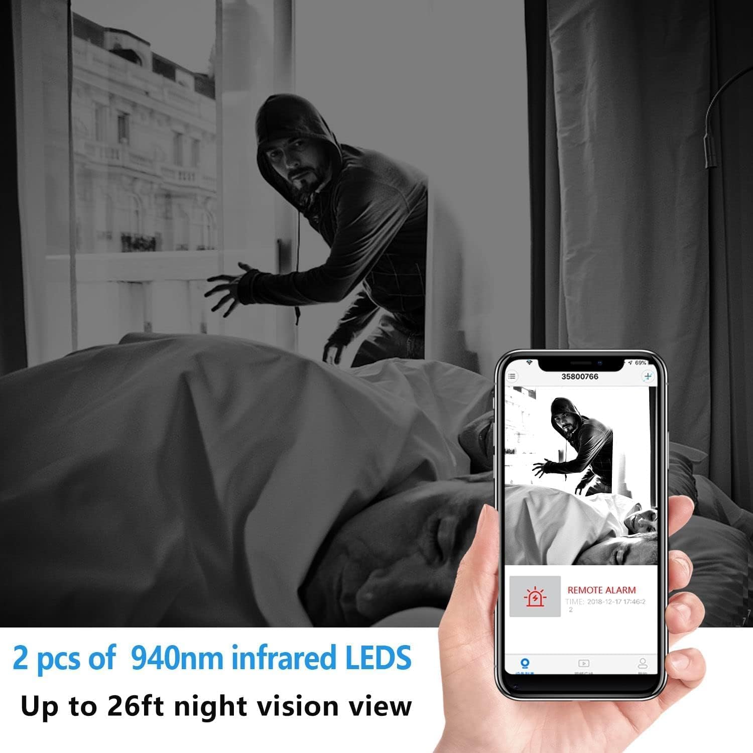 ✔️【Upgrade night vision】— XDWIFI biggest feature is night vision, using two 940nm infrared lights, night vision distance up to 26ft, so you can see very clearly in a low light environment, or even in total darkness, the infrared light is not glowing. Therefore, suitable for installation indoors, outdoors, companies, parking lots and other places to protect your safety.