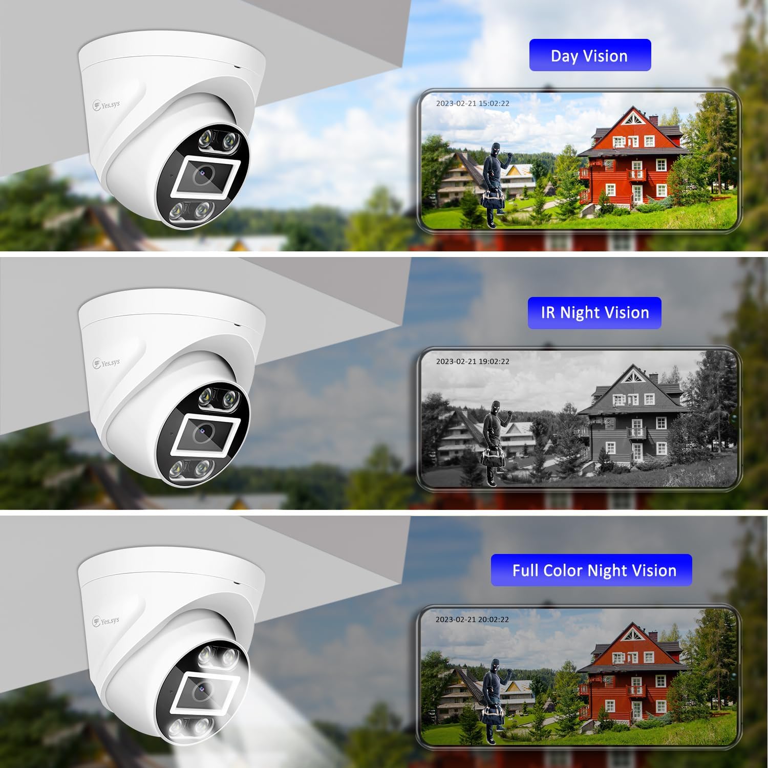 【More Convenient – Flexible Night Modes】Supports AI video detection. Through the mobile APP, you can switch between 3 night modes . Smart light mode, IR light mode, and white light mode. Smart light mode IR works normally at night, the white light on and turns the vision into color when human&vehicle are detected. (IR and White supplement light range up to 60ft)