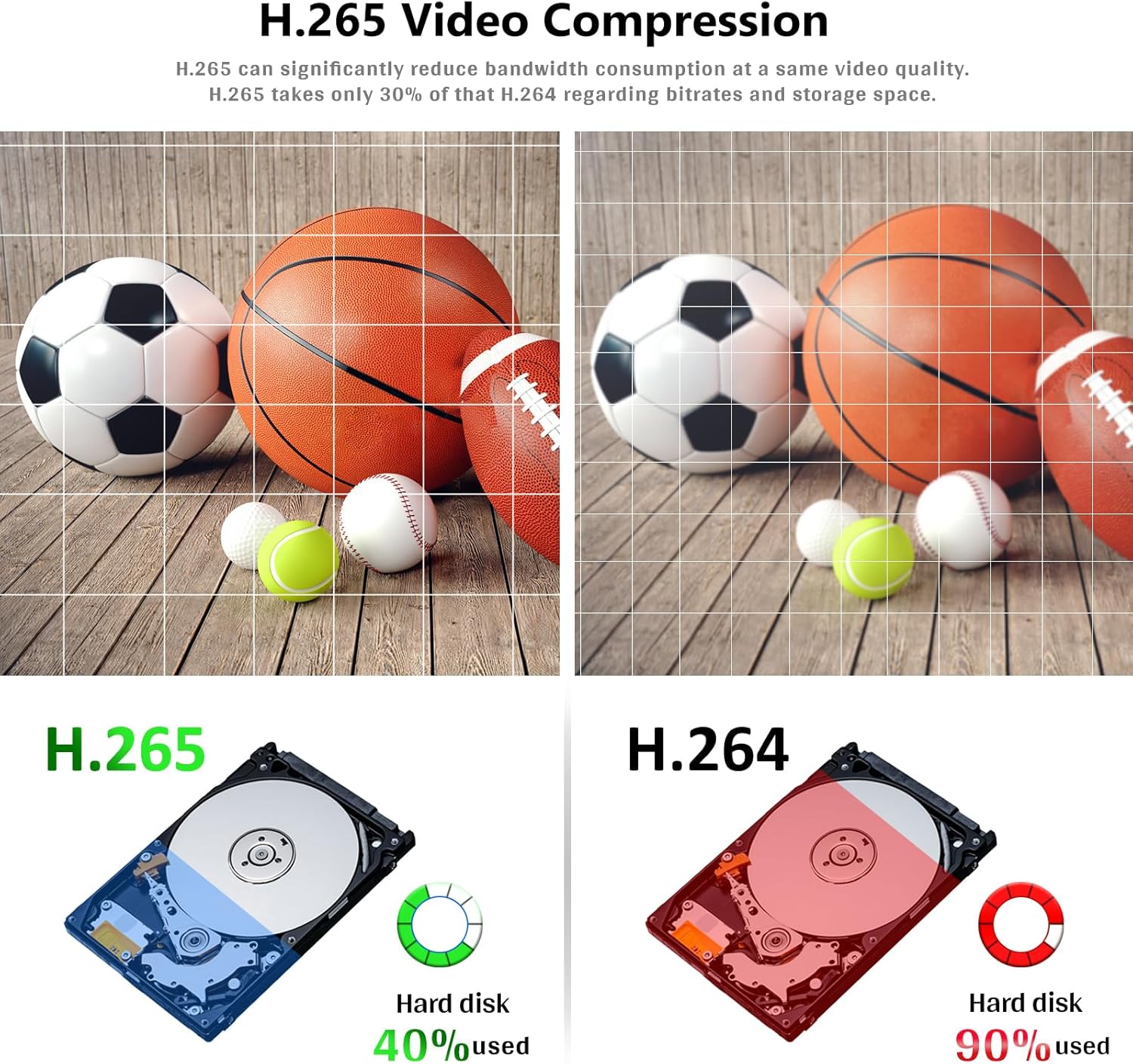 【Unidirectional Audio and Advanced H.265+ Coding】 This IP camera is equipped with a microphone ,you can listen to chat content in real time, via mobile phone or NVR, and chat content can record on your NVR or third-party software. Latest H.265 compression technology It can record more video and consume less bandwidth. keep your home and loved ones safe.