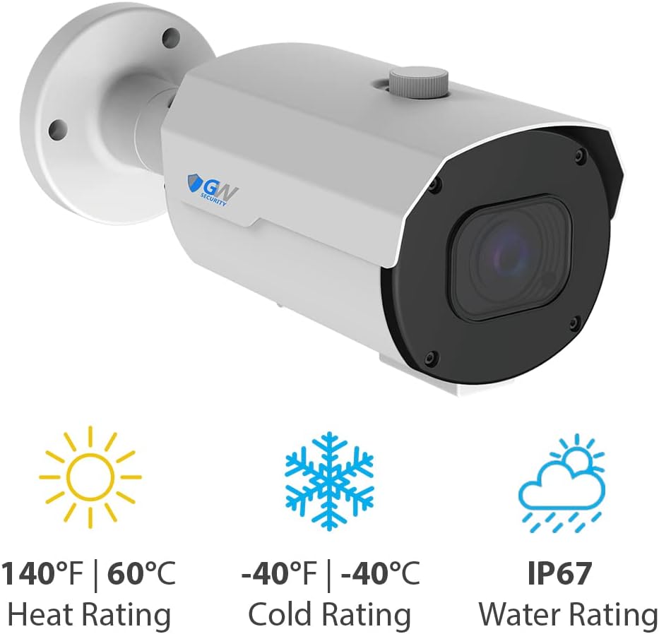 The Newest 8MP Camera Overview – 8 Megapixels (3840×2160) UltraHD 4K Video Record and Playback This GW Security 4K IP camera employs advanced high resolution 2160P in combination to the latest 8.0 Megapixel image sensor which provides the best quality image day and night, resolution up to 3840 x 2160. This camera can record real-time 6MP@30FPS and 8MP@15FPS, so that recorded video plays back smoothly and clearly. With GW Realtime 4K 2160p camera, you can see your surveillance footage in stunning 4K resolution(FOUR TIMES the clarity of 1080p) for amazing detail and superior recognition of faces or license plates. Built in 2.8~12mm Manual Zoom Varifocal Megapixel HD lens which allow you to adjust the angle of View. 18Pcs Infrared LED illumination for recording video at night up to 100Ft. This POE camera is completely Power over Ethernet so setup is clean and simple with just a single cable. Designed for easy installation, the dome camera has a waterproof housing, fits in most indoor and outdoor installations. It is ideal for home or business