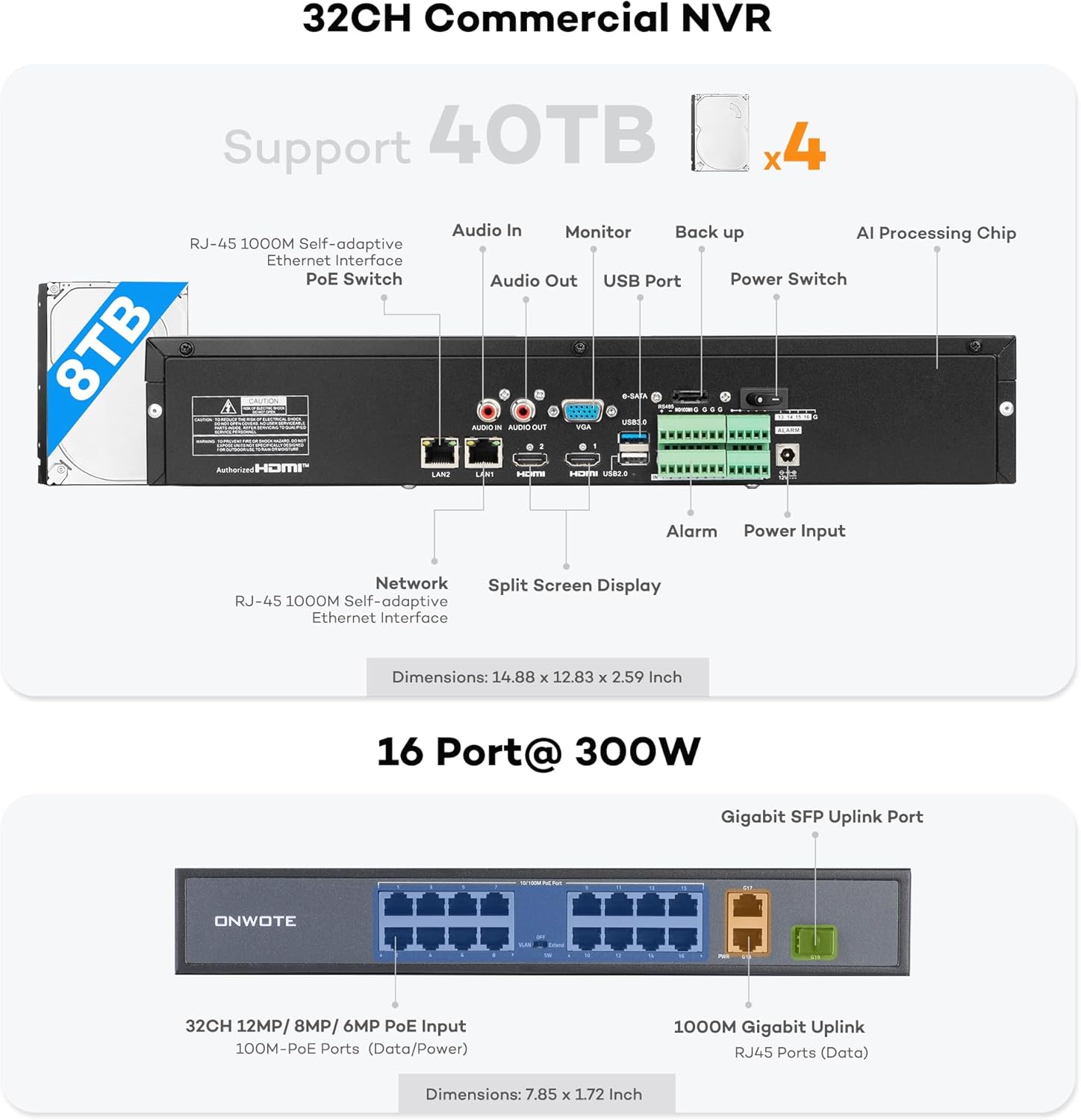 32CH 12MP NVR– Built-in 8TB HDD, 4 HDD ports support 40TB. 16-CH synchro playback.