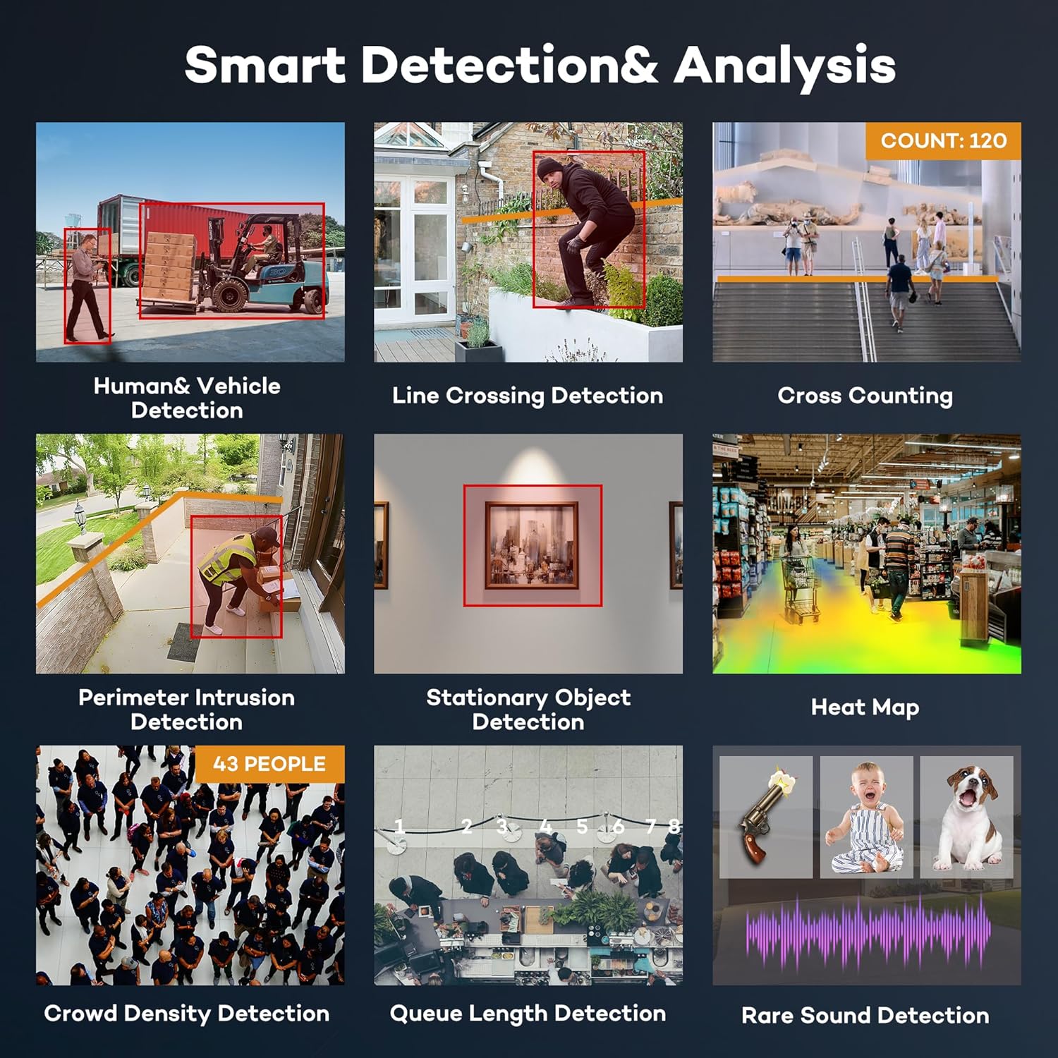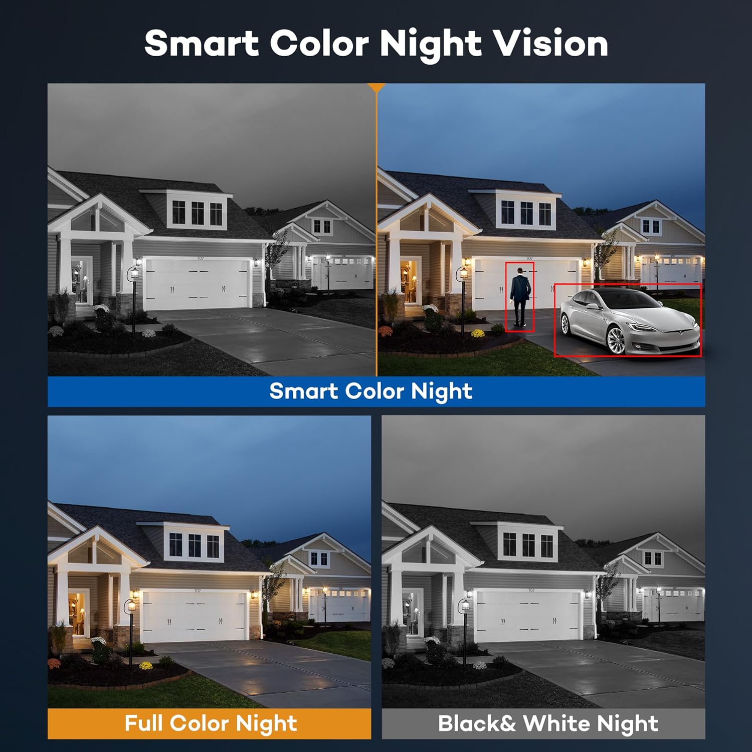 Smart Color Night Vision– AI human vehicle detection activate color night vision.