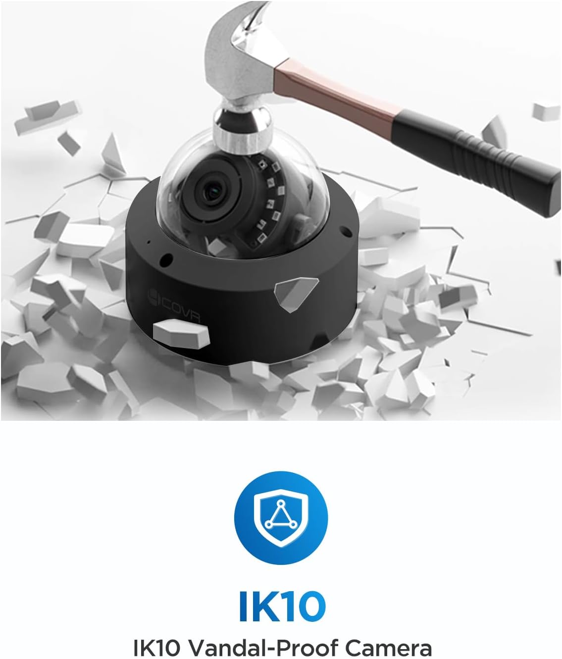 5MP HD DISPLAY: These 5MP PoE IP camera display in a 2592 x 1944 detailed image and up to 100ft night vision video monitoring, clear and crystal-clear footage during day and night.
