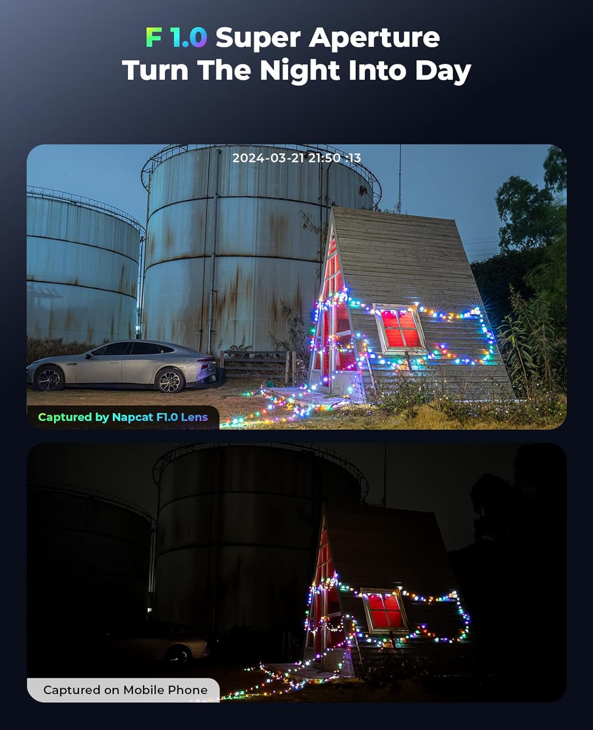 4MP Super HD & F1.0 Full Color: Elevate your surveillance with 4MP Super HD clarity and F1.0 vivid color night vision. Experience detailed, vibrant images in all lighting conditions, ensuring enhanced security throughout the day and night.