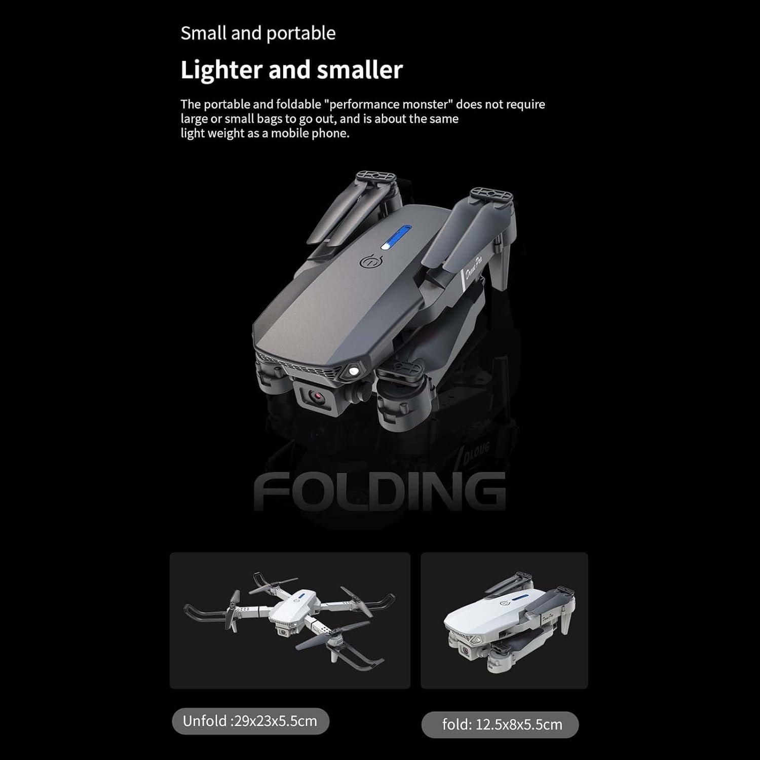 ➤With foldable arms, small size, easy to carry. Add music zoom function,With altitude hold mode function provides stable flight. With wifi function can be connected APP, APK system to take pictures, video, real-time transmission through the phone camera image.