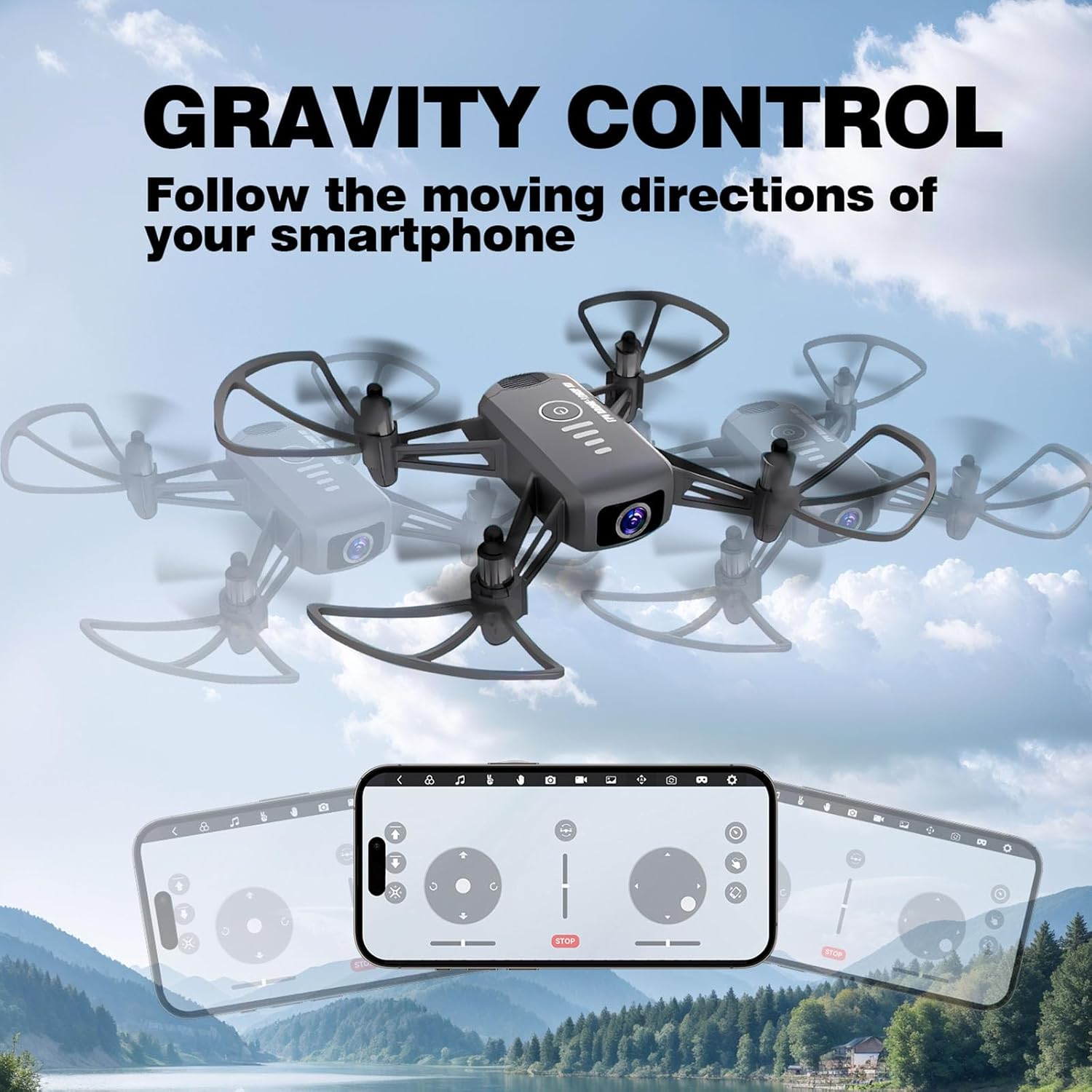 Gravity Control – Control your drone by tilting your mobile device, providing an intuitive and interactive flying experience. This unique feature makes it a fun toy for kids aged 8-13 and a perfect kids camera for capturing memorable moments.