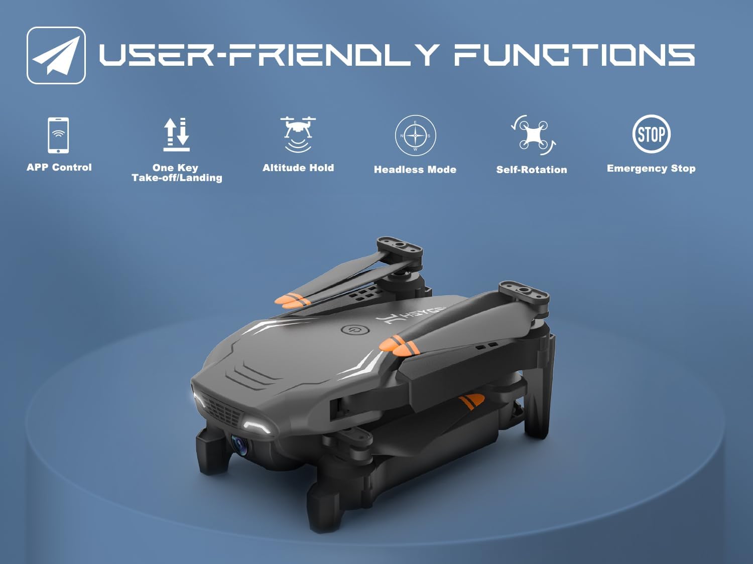 Stable Flight: User-friendly functions make it easy for kids/Newbies. One key start/land the small kids drone. With Altitude hold, the FPV drone can hover stably for High-quality pictures. 3 speeds make novice and adults quickly master the functions