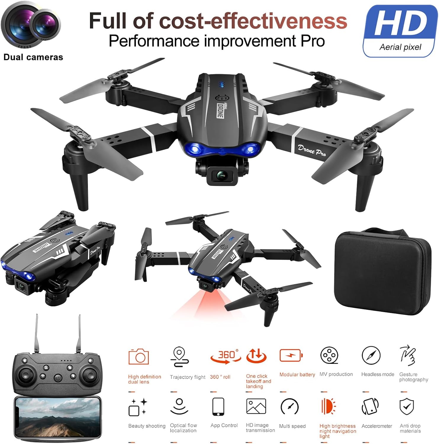 【Adaptive Balance Control System (ABCS)】The ZnLyrion S121 is not just a pro drone; it’s an advanced aerial photography tool with our patented ABCS. This innovative feature ensures unmatched stability for both novices and experts, making it the perfect starter drone, as well as suitable for advanced users easy to use. Ideal for capturing smooth, clear images and videos in various conditions, it’s a top contender for the best cheap drone under 60 in 2024.