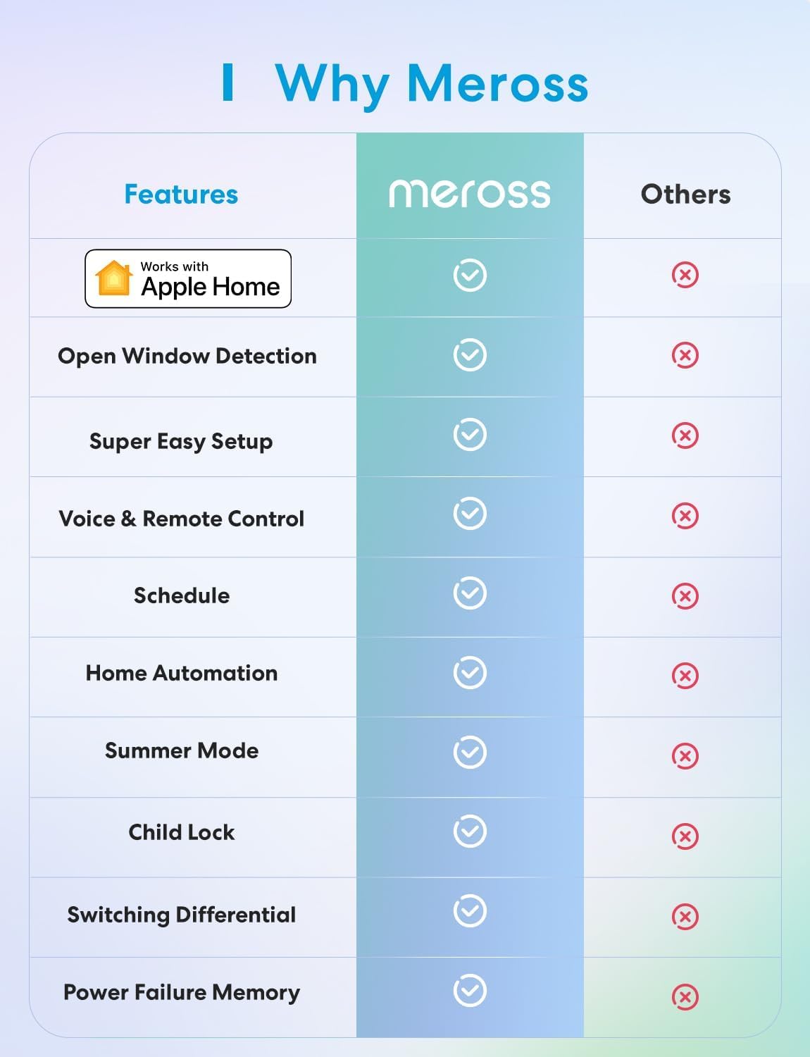 Schedule: Smart thermostat allows you to automatically control the heating via the Meross app using a schedule. With a 7×24 hours smart graphic schedule, you can easily save on heating costs by programming your desired temperature settings.