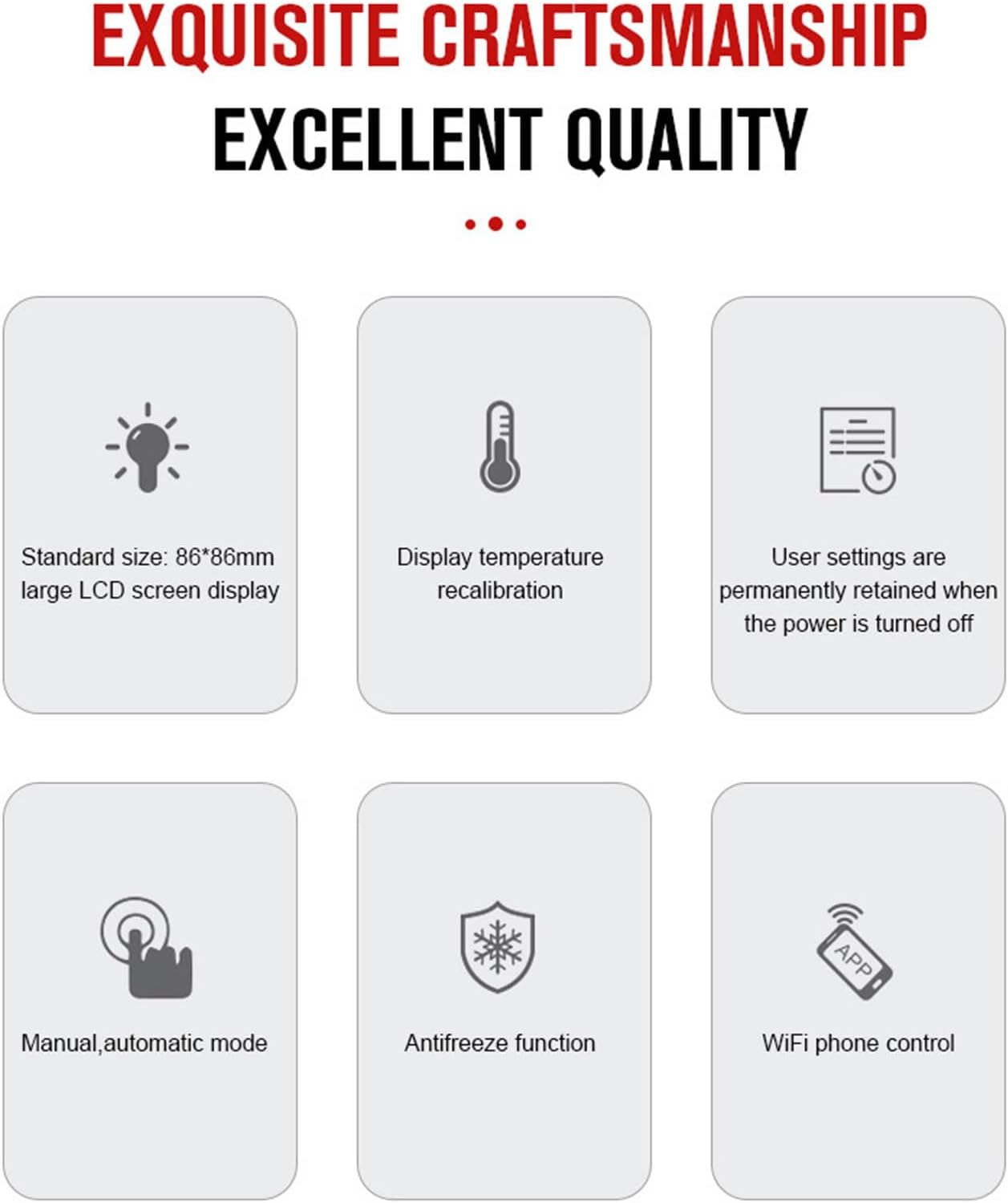 Widely Applicable: The thermostat is suitable for home, office, shopping malls, hotels, nursing homes and other types of places, can meet the needs of different places on the floor heating temperature control. It is not only practical, but also decorative, which can add the sense of fashion to the place.