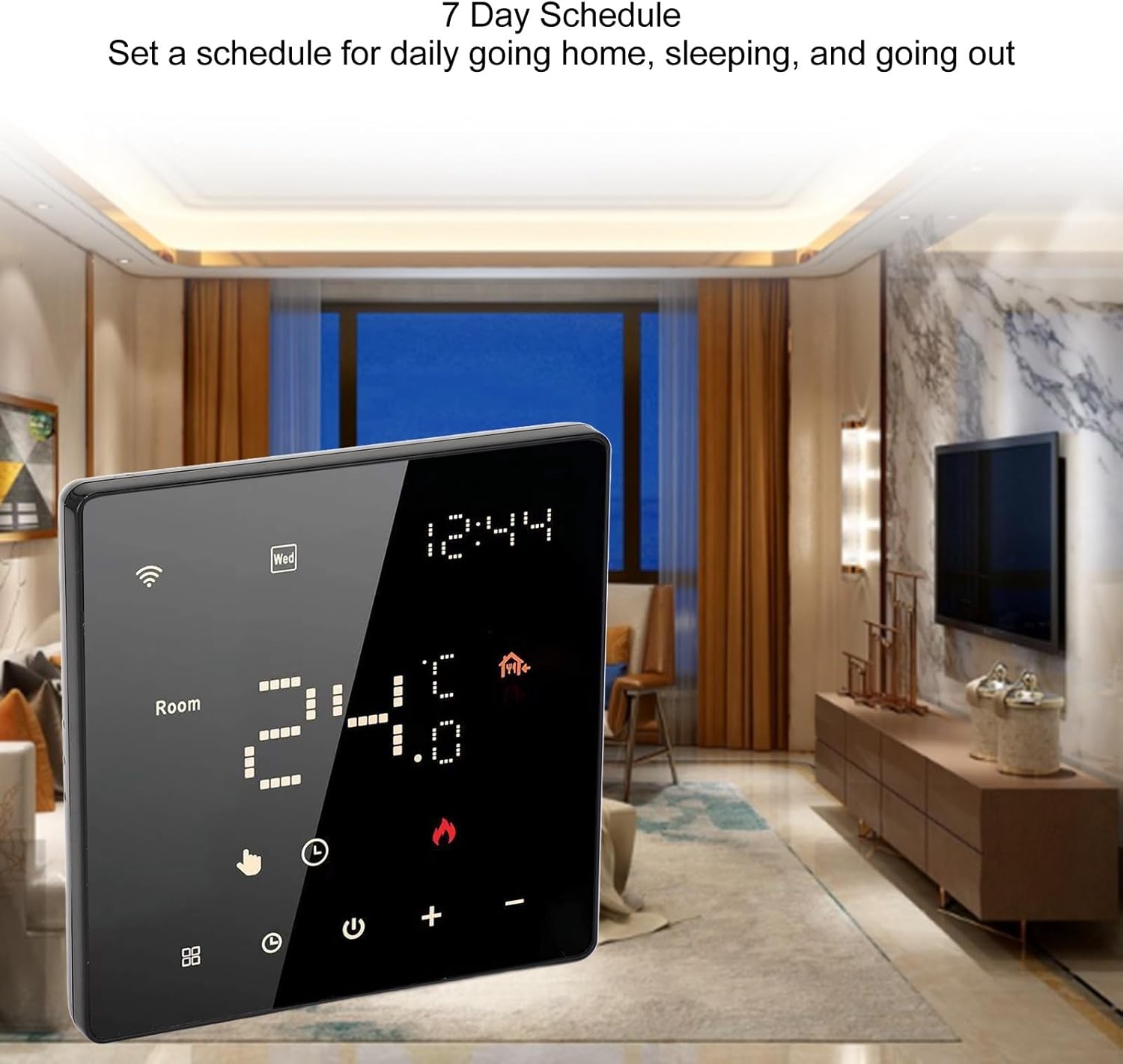 [7 DAY SCHEDULE] Set a schedule for daily going home, sleeping, and going out with our thermostat, so you do not have to repeatedly set it up.