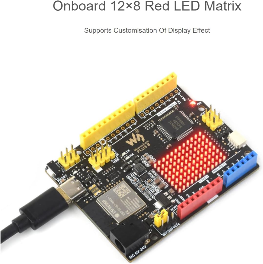 Onboard 12×8 red LED matrix, suitable for creative projects with animation or plotting sensor data, no additional hardware is required.