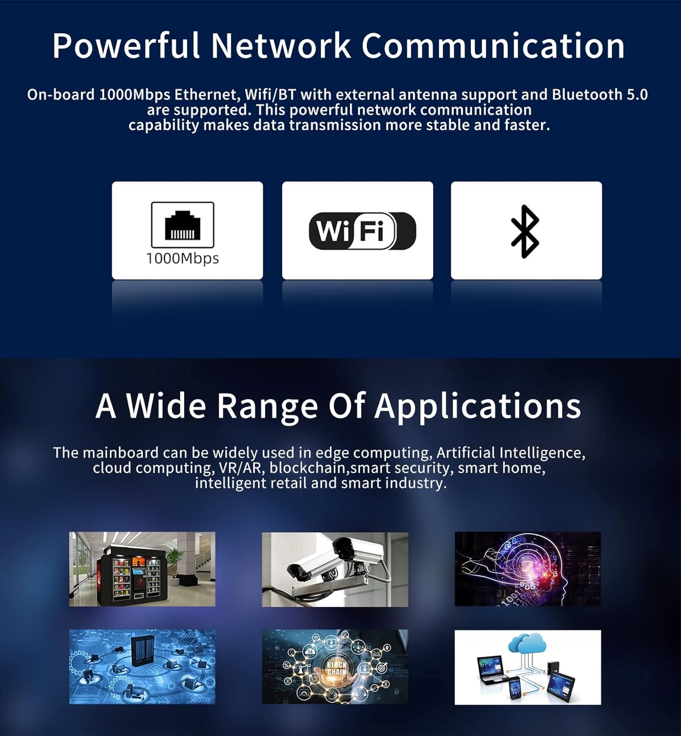Multi Storage eMMC module-Optional industrial compatible high performance eMMC module, 16G/32G/64G/128G available, TF card slot supports up to 128G; M.2 connector supports up to 2T M.2 NVME SSD